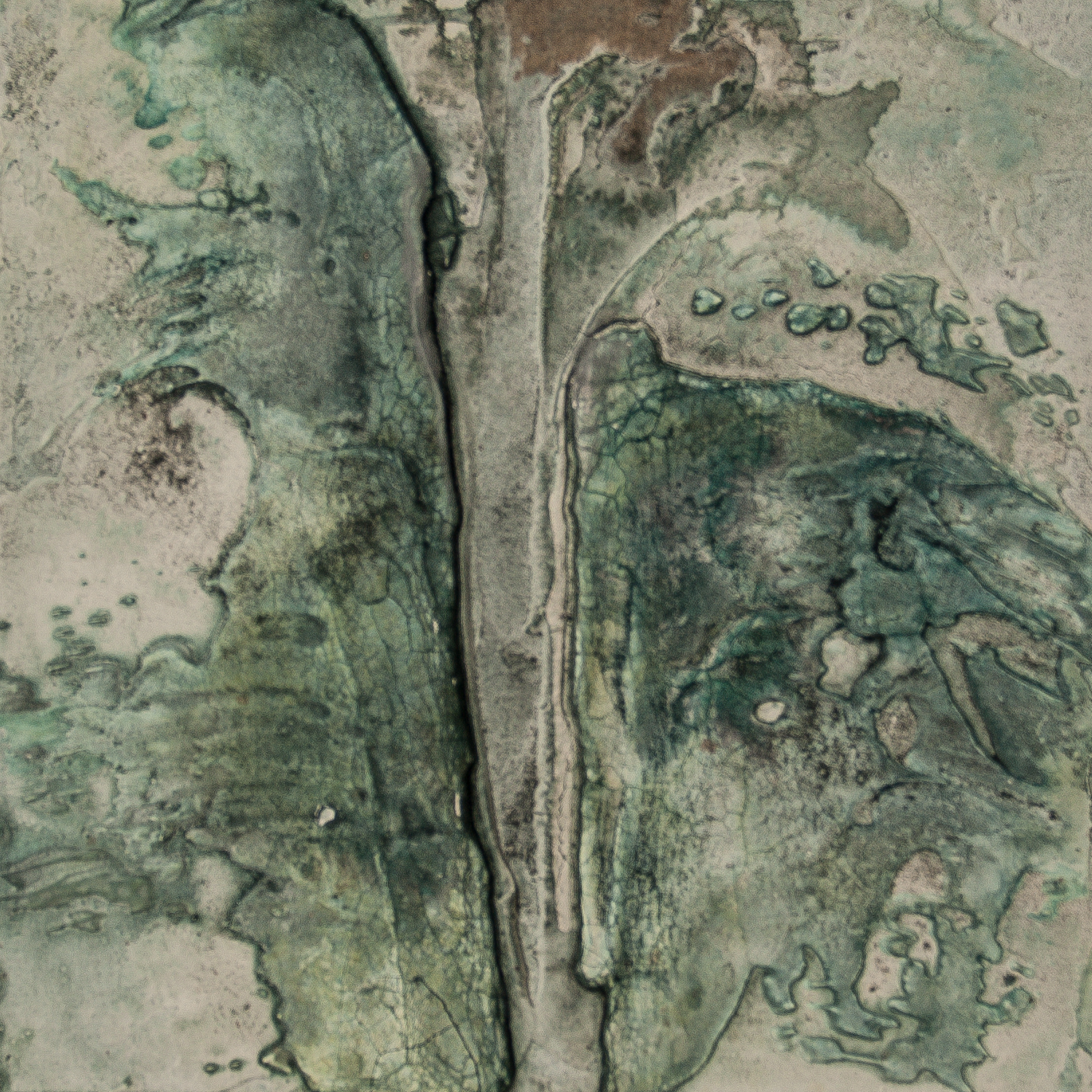 Der anschließende Farbauftrag spielt mit den entstandenen Oberflächenstrukturen und macht sie oft erst dadurch sichtbar.